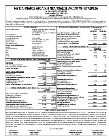 ΟΙΚΟΝΟΜΙΚΑ ΑΠΟΤΕΛΕΣΜΑΤΑ 2012