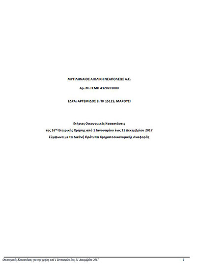 Για να κατεβάσετε τις Χρηματοοικονομικές Καταστάσεις του 2017 πατήστε εδώ