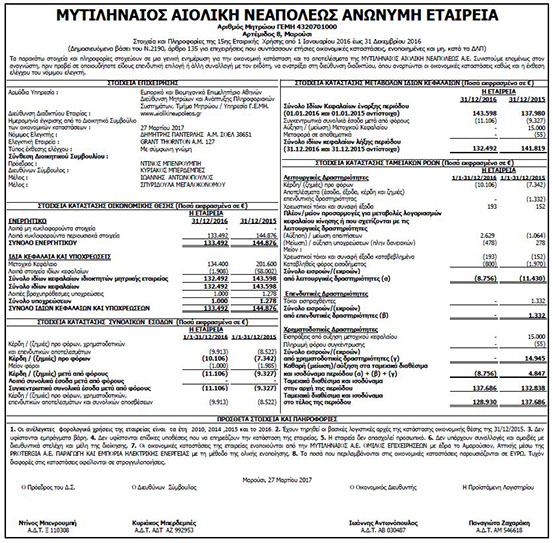 ΜΥΤΙΛΗΝΑΙΟΣ ΑΙΟΛΙΚΗ ΝΕΑΠΟΛΕΩΣ Α.Ε.