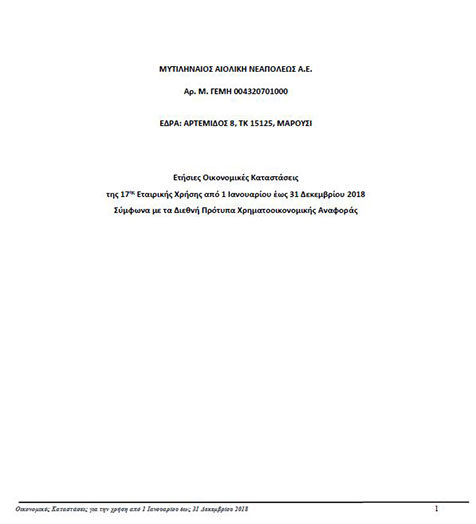 Για να κατεβάσετε τις Χρηματοοικονομικές Καταστάσεις του 2018 πατήστε εδώ