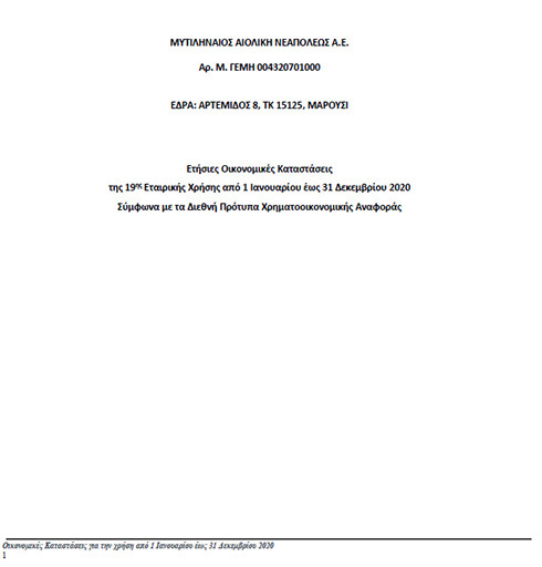 Για να κατεβάσετε τις Χρηματοοικονομικές Καταστάσεις του 2020 πατήστε εδώ
