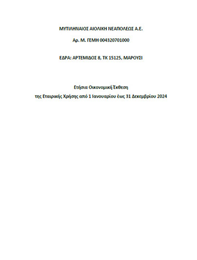 ΜΥΤΙΛΗΝΑΙΟΣ ΑΙΟΛΙΚΗ ΝΕΑΠΟΛΕΩΣ Α.Ε.